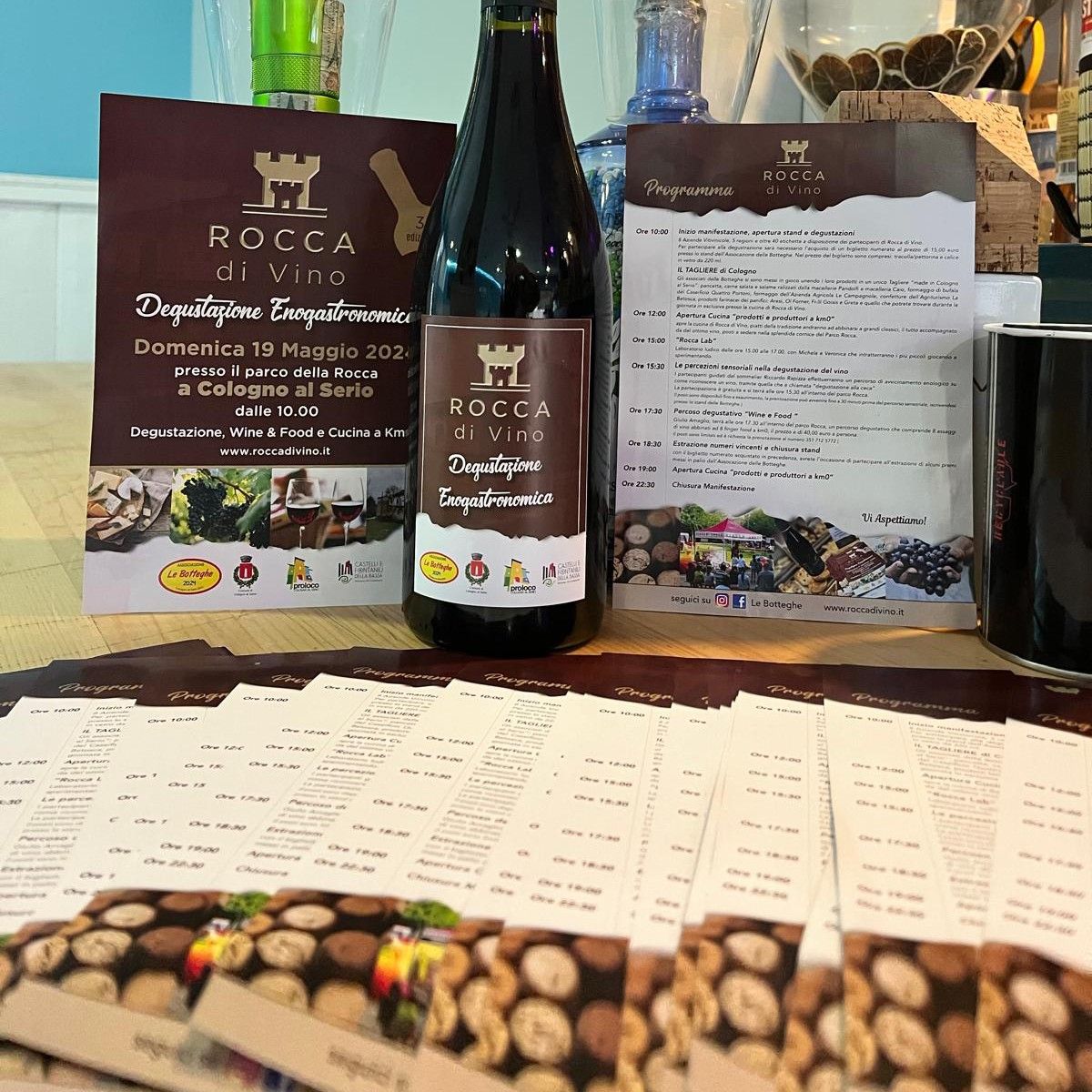 Dopo il successo della seconda edizione si riprensenta l'evento Rocca di Vino. Presso il Parco Rocca di Cologno al Serio, l’ associazione delle Botteghe, con il patrocinio del comune e con la partecipazione della ProLoco, propone la manifestazione enogastronomica Rocca di Vino, con l’obbiettivo di avvicinare la cittadinanza e i partecipanti a cantine vitivinicole e produttori agroalimentari del territorio. L’iniziativa si colloca nel contesto di valorizzazione delle aziende e dei prodotti locali a livello del Distretto del Commercio Castelli e Fontanili della Bassa Bergamasca dove sono allo studio varie iniziative, tra cui un mercato agricolo a km0.